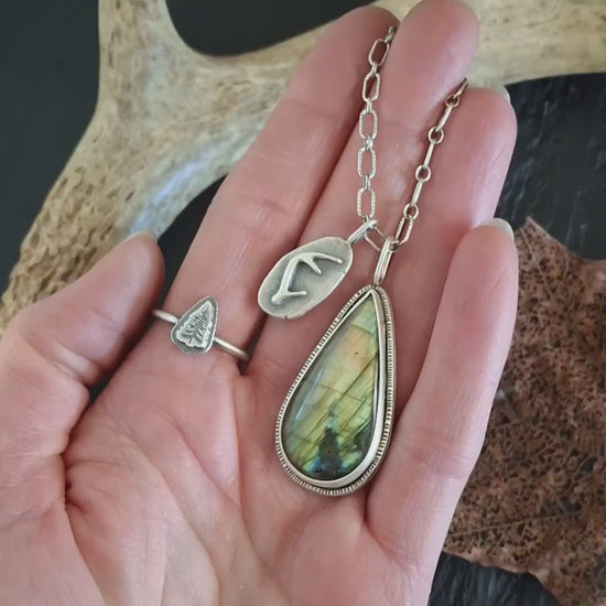 Forest Bundle - Labradorite Charm Necklace and Pine Tree Ring - Size 8