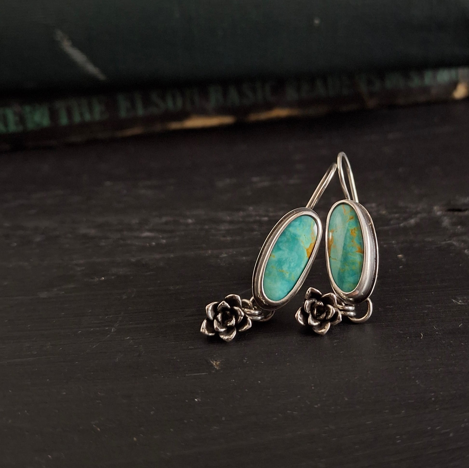 Kingman Turquoise and Succulent Dangle Earrings | Sterling Silver | Nature-Inspired Jewelry