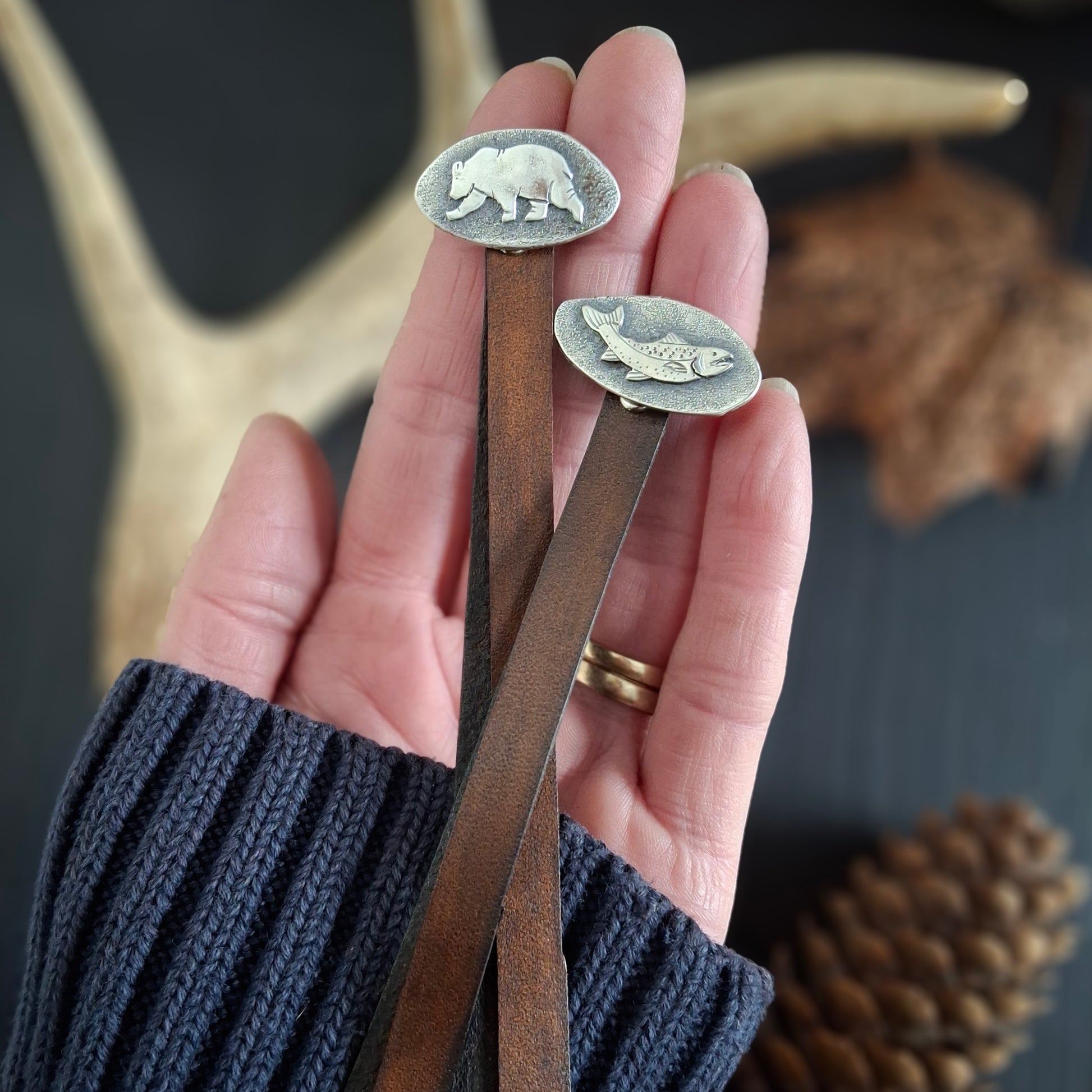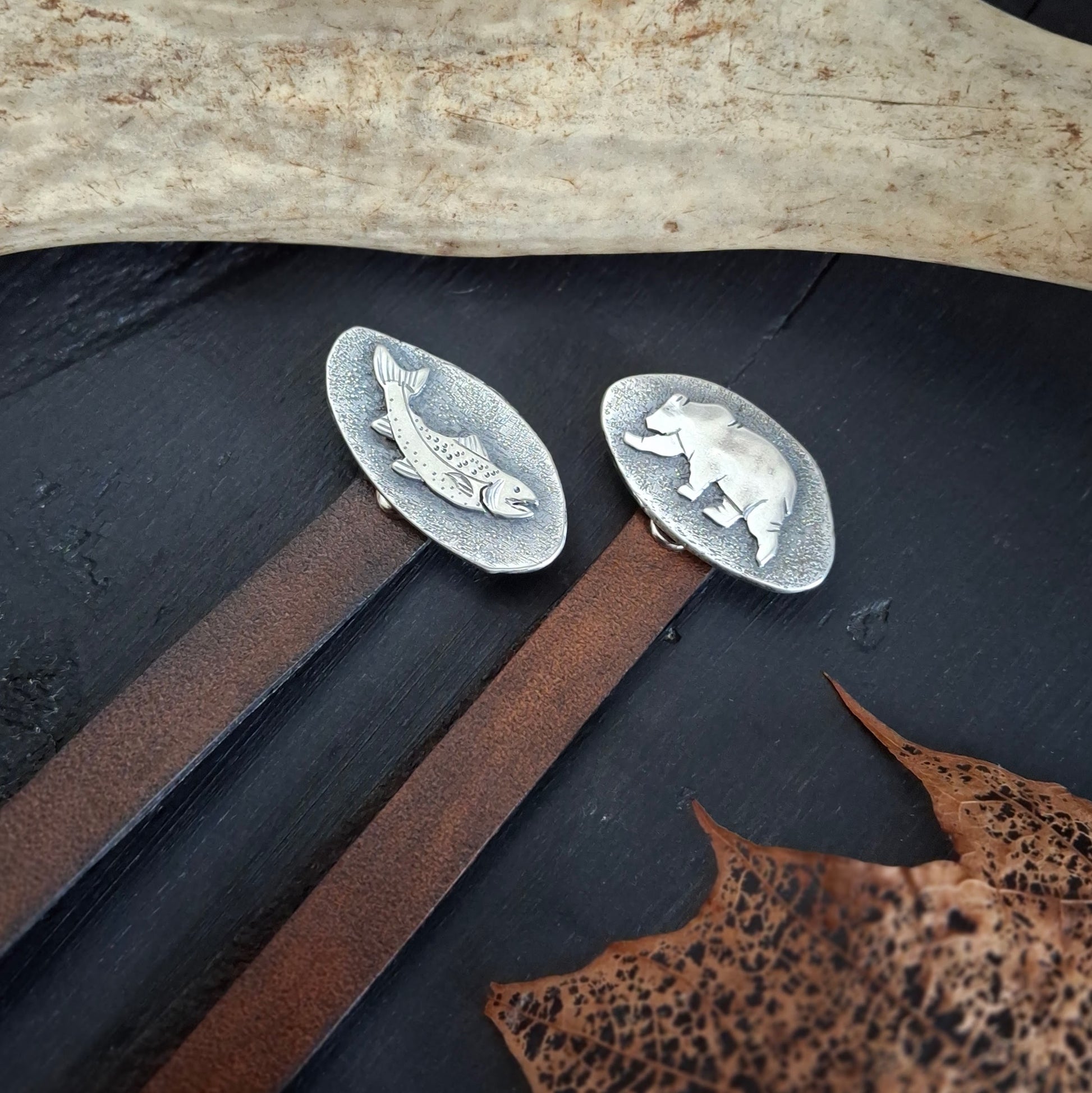 Trout and Bear Bookmarks | Reclaimed Silver and Leather