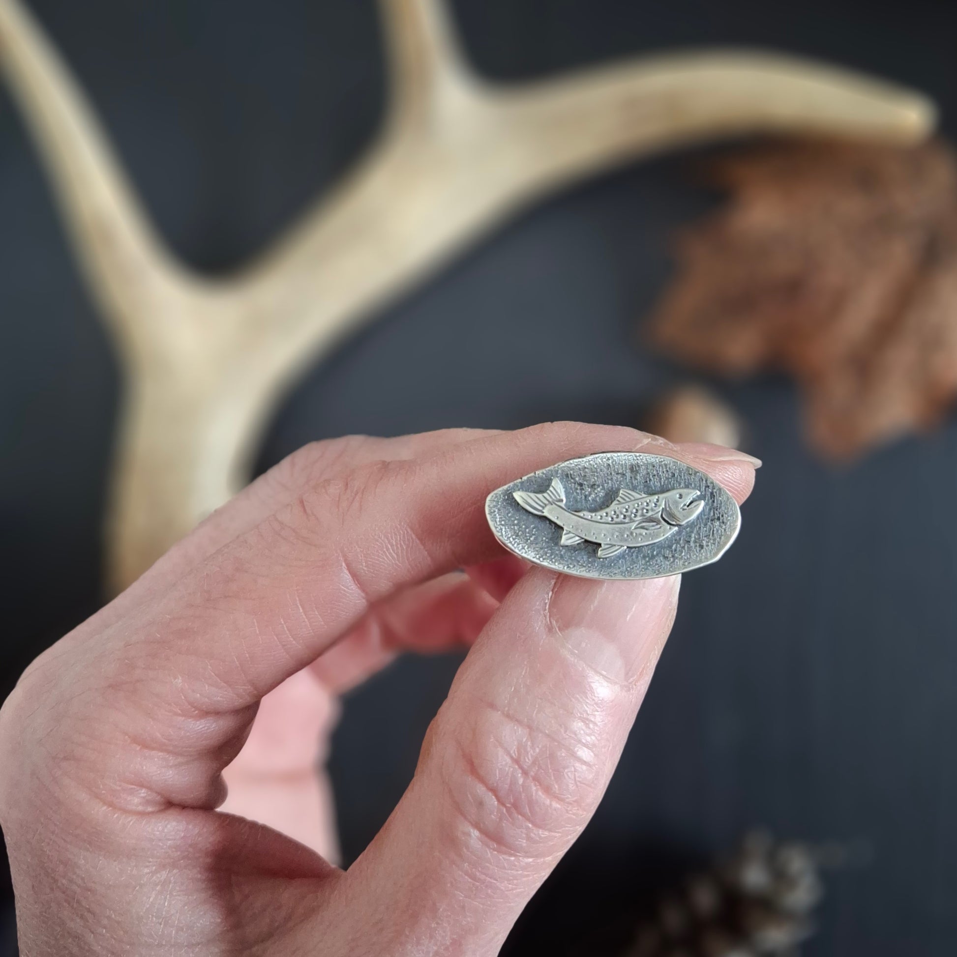 Each bookmark pairs reclaimed sterling silver with soft, weathered leather, the kind that feels like it’s already been part of your story. Every silver top is hand-sawn, shaped, and textured at the bench, featuring either a trout or a bear, both symbols of nature’s rhythm and resilience.